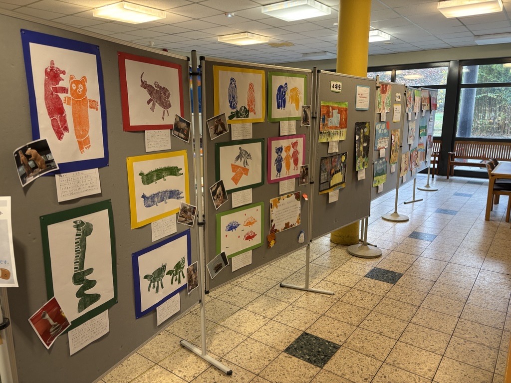 11月4日(火)より11月14日(金)まで秋の展覧会を開催しています。幼児児童生徒たちのこれまでの図工・美術・家庭科の授業作品を展示しています。他学年の作品を鑑賞し、これからの作品づくりの関心、意欲につなげています。保護者の方もお子様の成長を感じられる作品となっているようです。