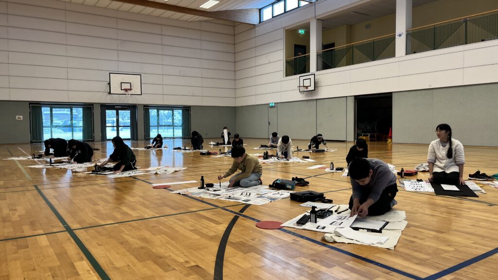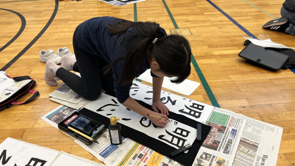 雪の積もる新年、書き初めを行いました。