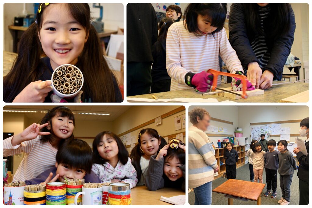 2年生の生活科では、地域の自然保護活動を行っている方と一緒に活動しています。8月にクルプンダー湖に出かけてお手伝いをし、12月には日本人学校でクリスマスクッキー作り。そして1月にはWildbienen-Hotels(野生のミツバチホテル)作りを行いました。生活科では、人とのつながりを大切にする心を育て、地域への愛着をもつことを目標としています。